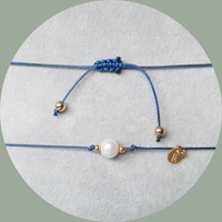 Niebieska bransoletka sznurkowa z naturalną perłą i złotymi akcentami