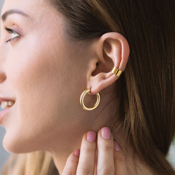 Komplet biżuterii: srebrne pozłacane kolczyki koła i nausznica gładka